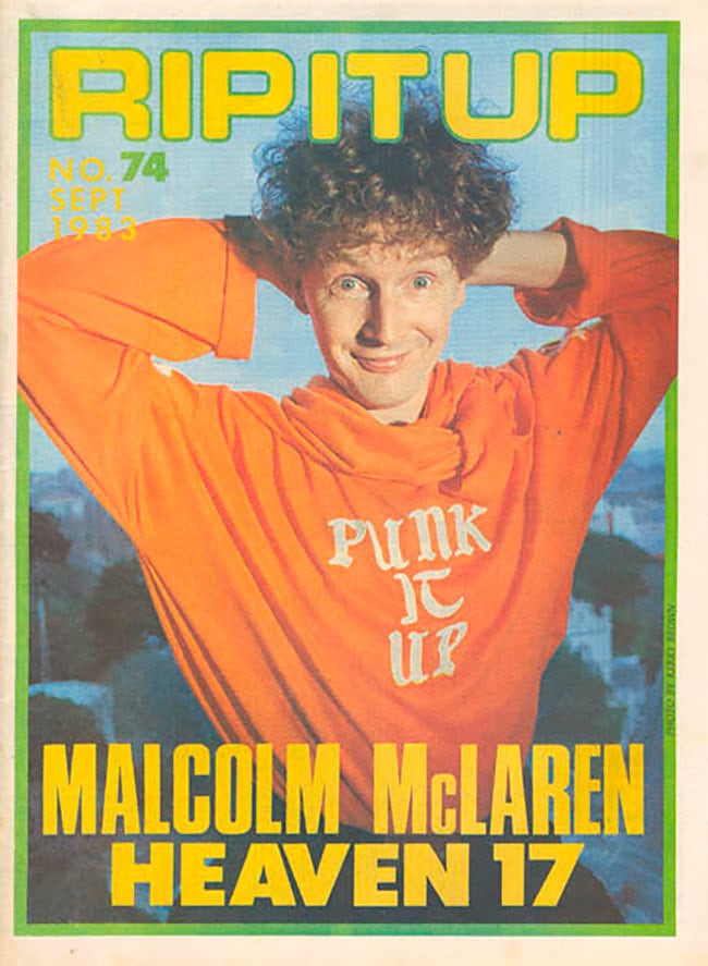 イギリスのロック・バンド・マネージャー、ファッションデザイナー、ミュージシャン、起業家。セックス・ピストルズおよびニューヨーク・ドールズの仕掛人、マルコム・マクラーレンが着ていたシャツの"PUNK IT UP"を"ZOOT IT UP"に置き換えました。