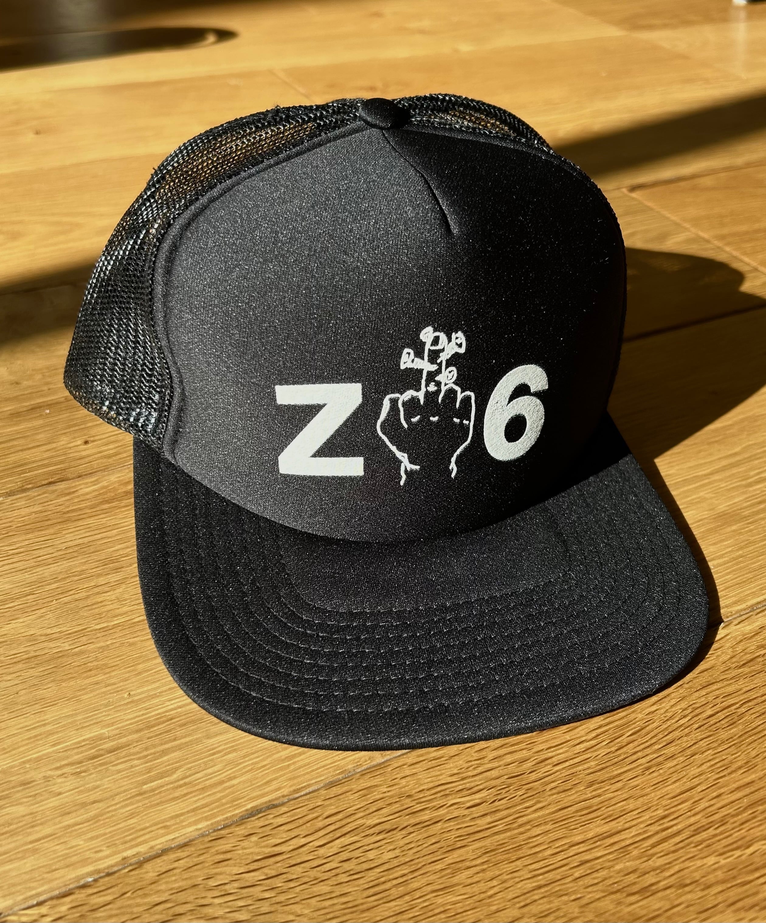 ボディーはOTTO-H1037 フラットバイザーメッシュキャップ HIGHCROWNを使用したメッシュキャップ。プリントは今から20年前にリリースしたアルバム「完全逆様な世界」の時にデザイナー"井口弘史 Instagram@thebwoy"が販促の物販用に中指にボルトが埋め込められたメッセージデザイン。